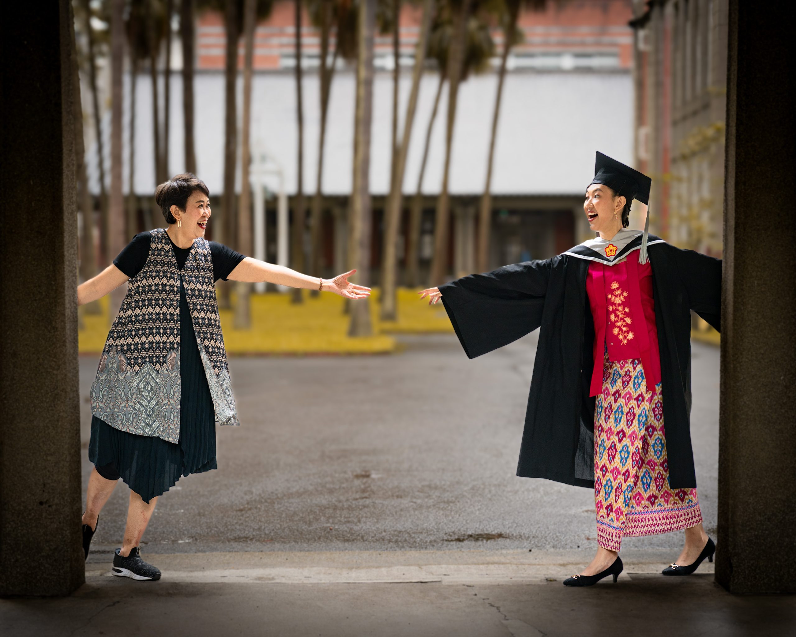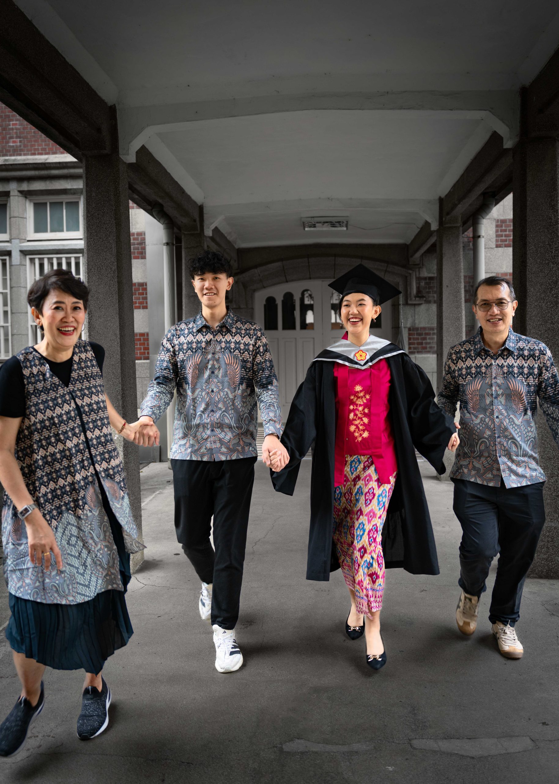 Framed by the historic arches of National Taiwan Normal University, Irene’s graduation session was a perfect blend of elegance, culture, and joyful family energy. Wearing her traditional attire with pride and a radiant smile, Irene marked this milestone surrounded by the laughter and love of her closest ones.