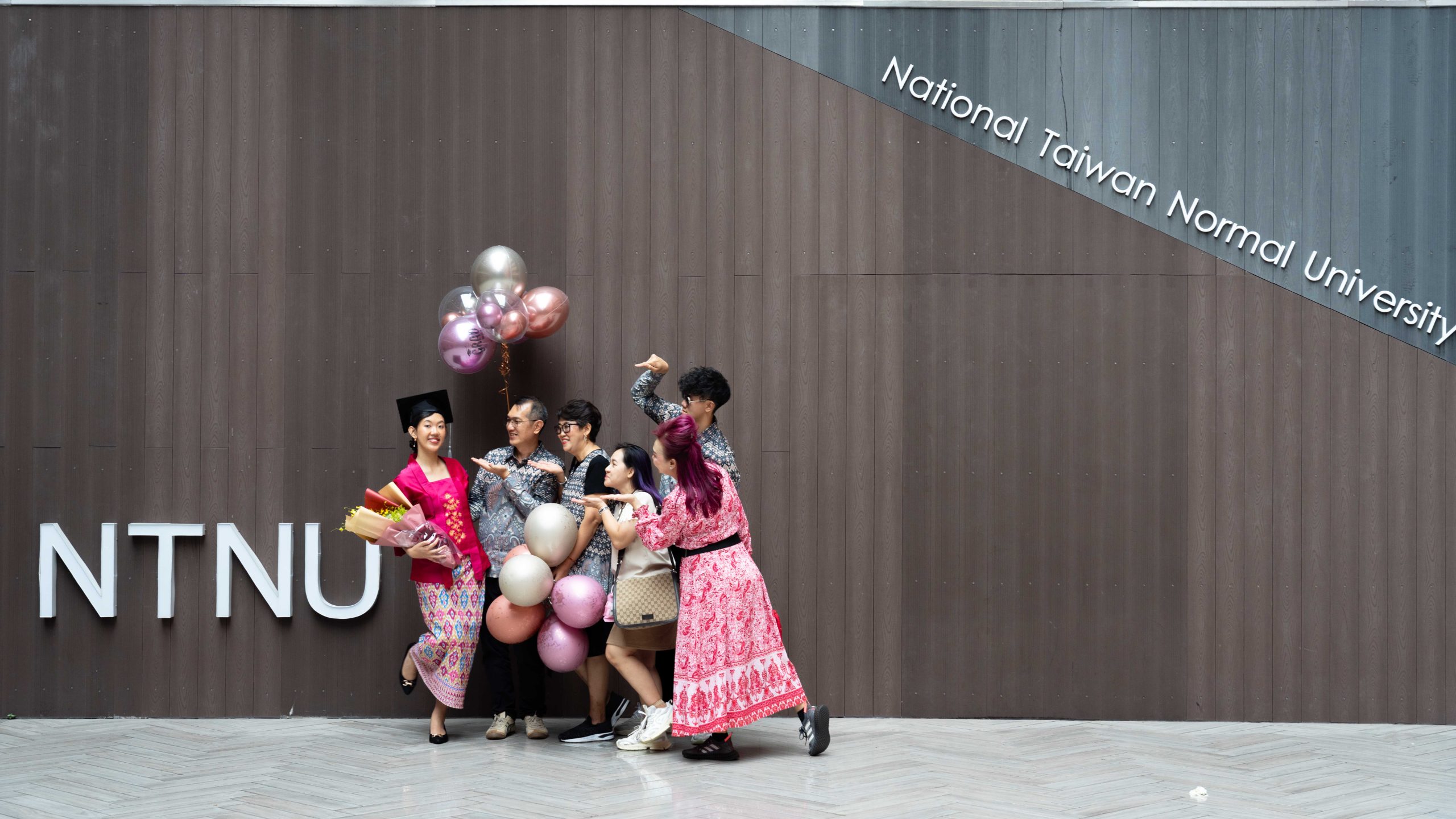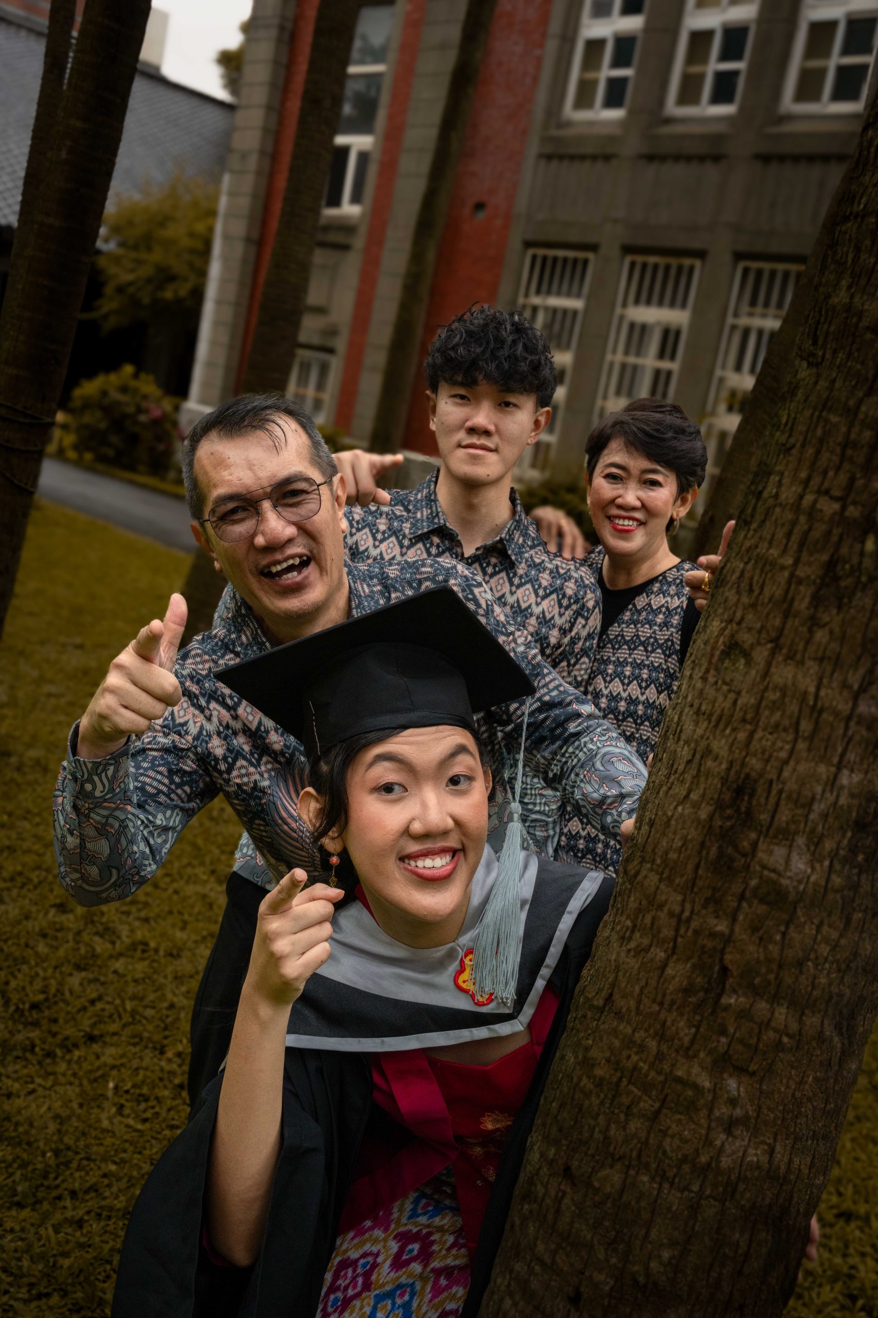 From heartfelt hugs on the steps to playful pointing and shared moments beneath the NTNU sign, each photo told a story — one of hard work, family legacy, and cultural identity. Her family’s coordinated batik was more than fashion — it was a symbol of unity and pride.